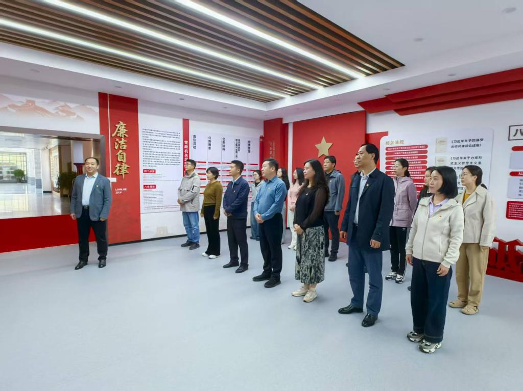 在党风党纪学习教育馆,大家共同学习了中国共产党奋斗的百年历程、《中国共产党纪律处分条例》与新时代好干部标准、中央八项规定精神、学校领导干部“十不准”、《党政机关厉行节约反对学杂费条例》和《中国共产党廉洁自律准则》等内容。最后,同志们一起重温了入党誓词。