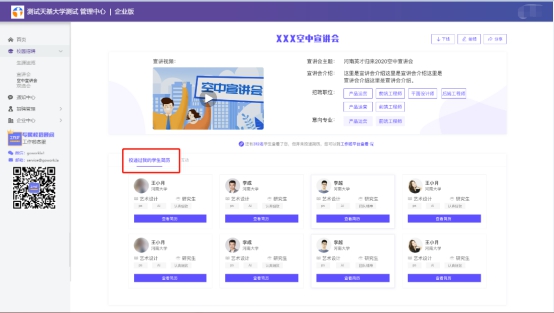 通过审核的用人单位,可以点击【投递过我的学生】按钮直接查看学生投递简历。