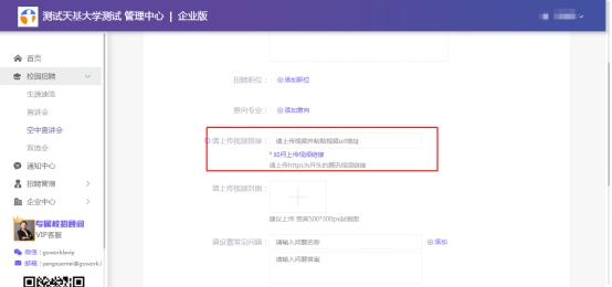 点击【空中宣讲会】,填写详细信息,并把已复制的腾讯视频链接粘贴至【上传视频链接】处