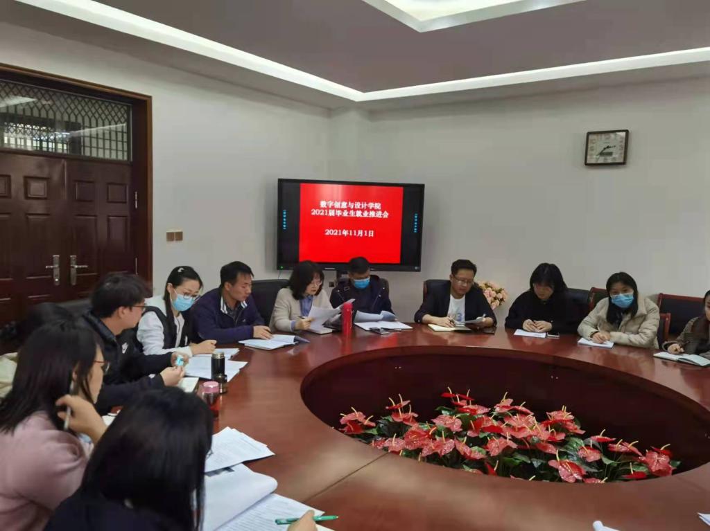 11月1日,数字创意与设计学院在行政楼A335召开2021届毕业生就业工作推进会,院党总支书记徐海燕主持会议,学院领导班子、教研室主任、2021届毕业生辅导员共21人参加会议。