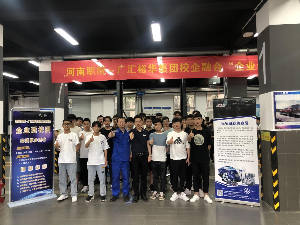 为有效贯彻汽车工程学院校企联合培养新时代技术性人才的新理念,培养具备实干精神和扎实技术的学生,促进校企融合向纵深发展,6月17日下午14:00——18:00,汽车工程学院联合广汇裕华集团上海大众在实训楼102实训室(一楼大厅)开展校企融合“企业进校园”实践服务活动。广汇裕华集团讲师曾亚州、技工栾明杰和汽车工程学院裕华订单班全体学生参与此次活动。