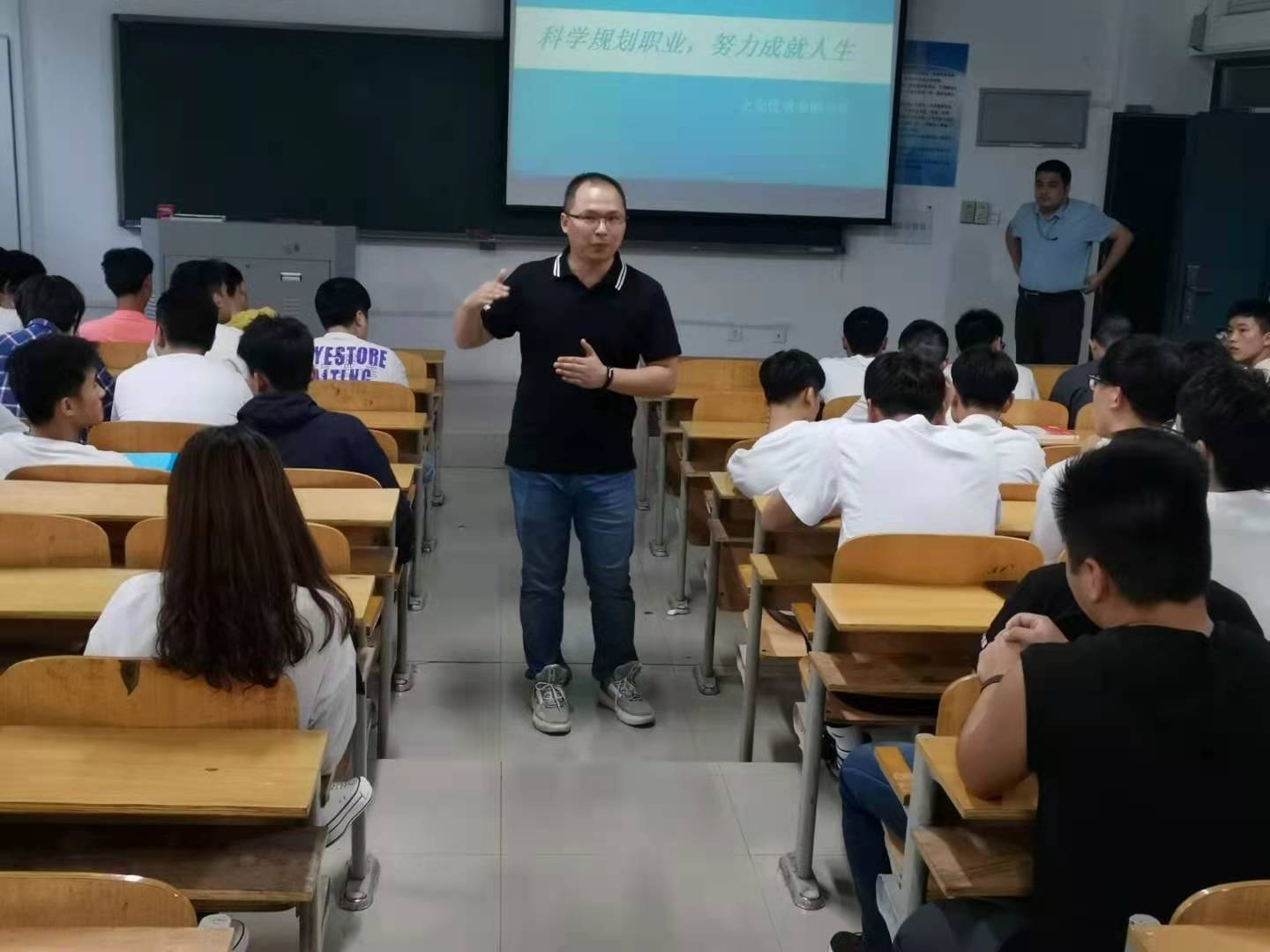 5月18日下午3时,机电工程学院于明理楼1102教室举行“科学规划职业,努力成就人生—企业实践优秀案例”分享会,我院2020级160余名学生参加了本次活动。本次分享会是机电工程学院职业生涯展示月活动首场宣讲,邀请到富士康科技集团人事部朱经理、企业优秀实习生马爽、丁龙龙。两位学长分享了自己的个人经历和职业发展规划,建议同学们提前做好人生规划。会场气氛热烈,收到良好效果。(撰稿:苑彬 审稿:赵军华)
