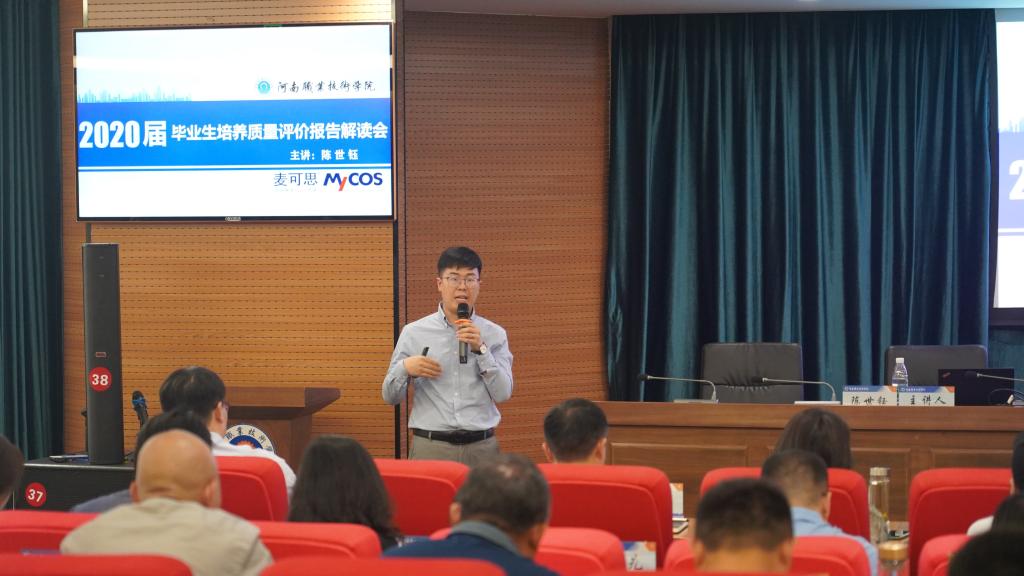5月13日下午,我校召开2020届毕业生培养质量评价报告会。麦可思数据有限公司专家陈世钰应邀做深度解读。学院领导班子成员;相关职能处室负责人;各二级学院书记、院长、副书记、副院长;全体毕业班辅导员等100余人听取了报告。