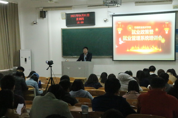 河南省大中专学生就业服务中心综合服务部主任王冰从做好毕业生就业统计工作的目的和意义、毕业生就业统计指标体系解读、当前毕业生就业统计工作中存在的问题及相关要求等三个方面对我校全体辅导员和参会学生进行专题培训并通报了国务院大督查情况。河南省大中专学生就业服务中心综合服务部副主任邓小龙紧密结合河南省大中专毕业生就业信息管理系统,对我校全体辅导员进行就业统计工作培训。