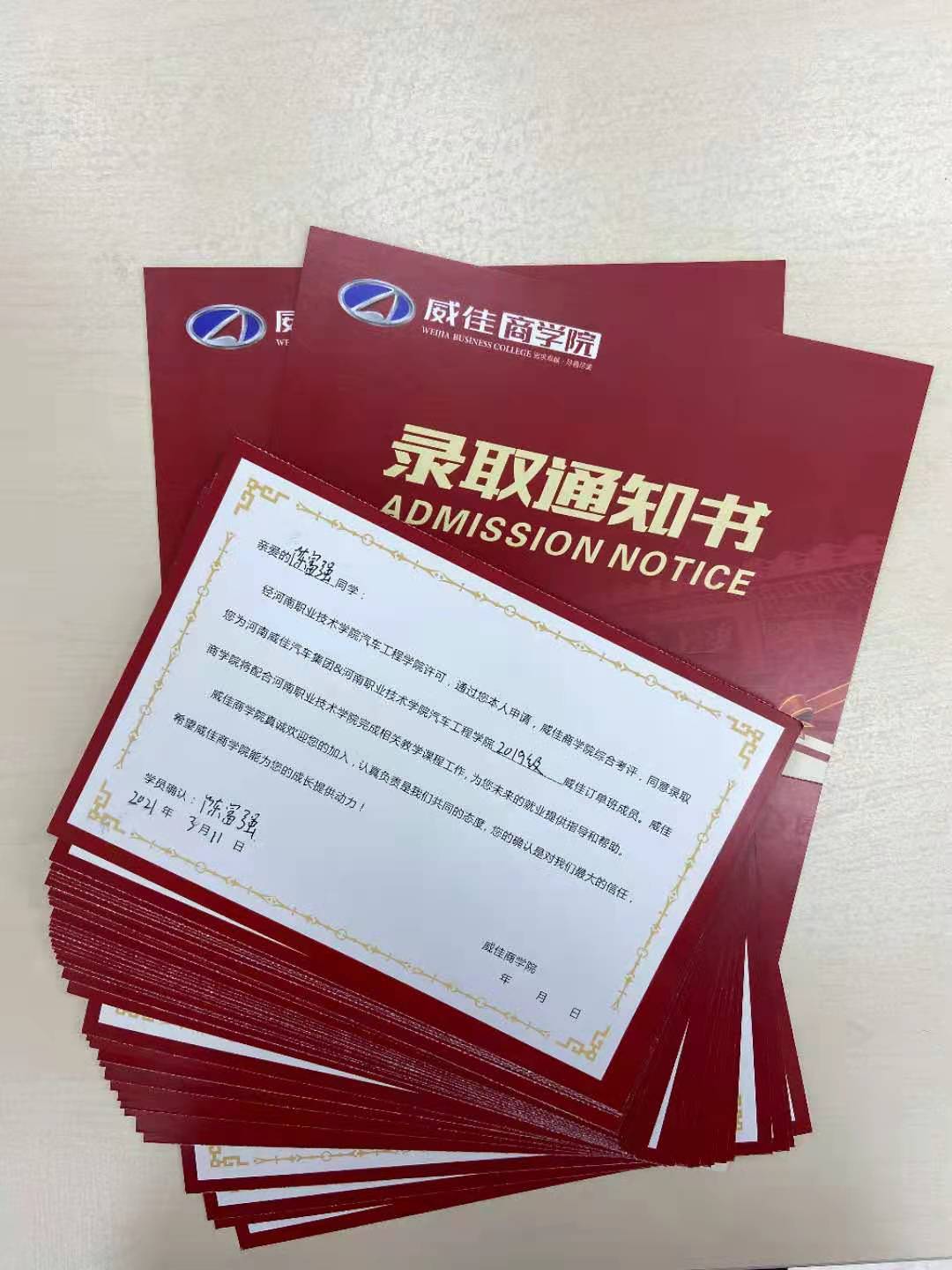 威佳人事经理王朝军经理向同学们介绍了威佳班课程《汽车职业素养》的内容和要求,并向同学们发放录取通知书。