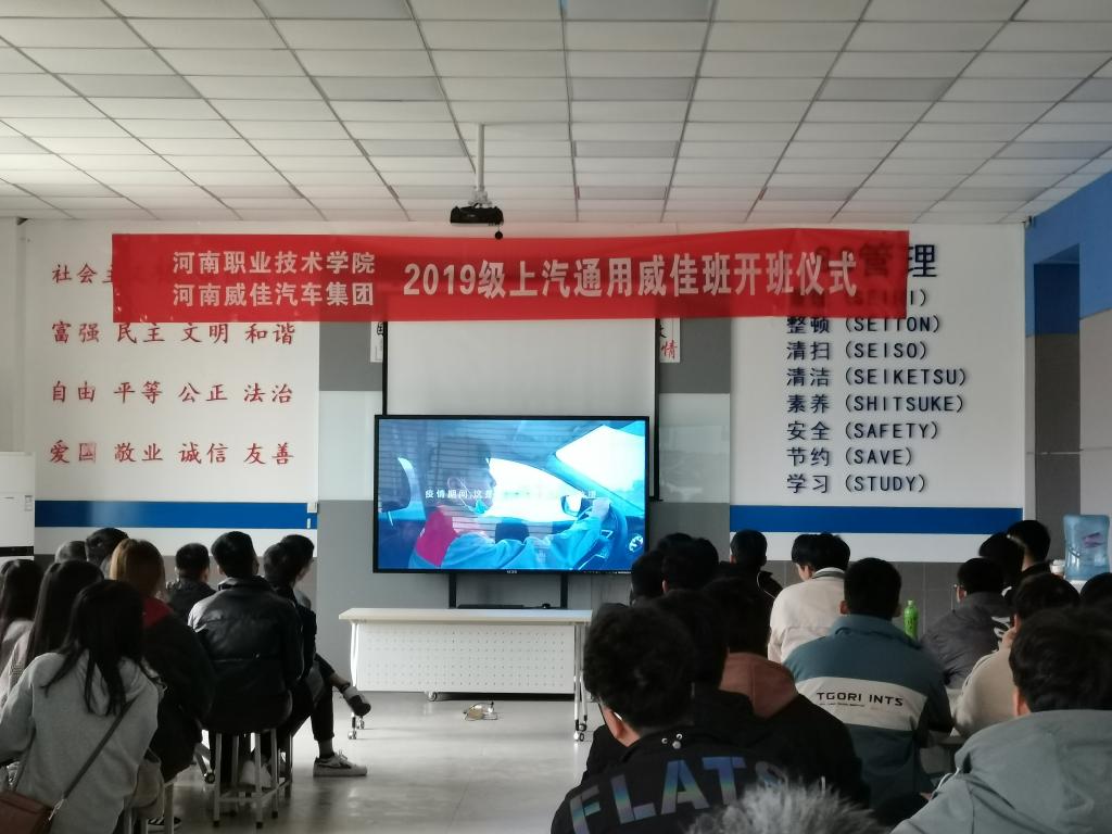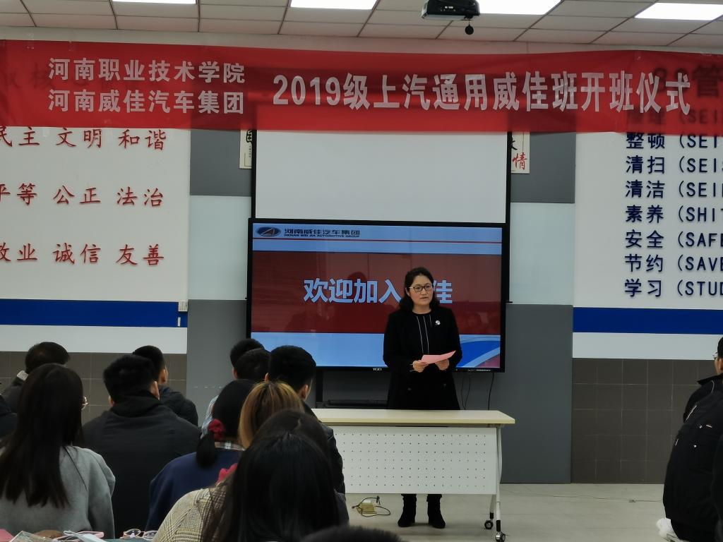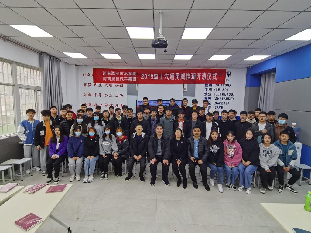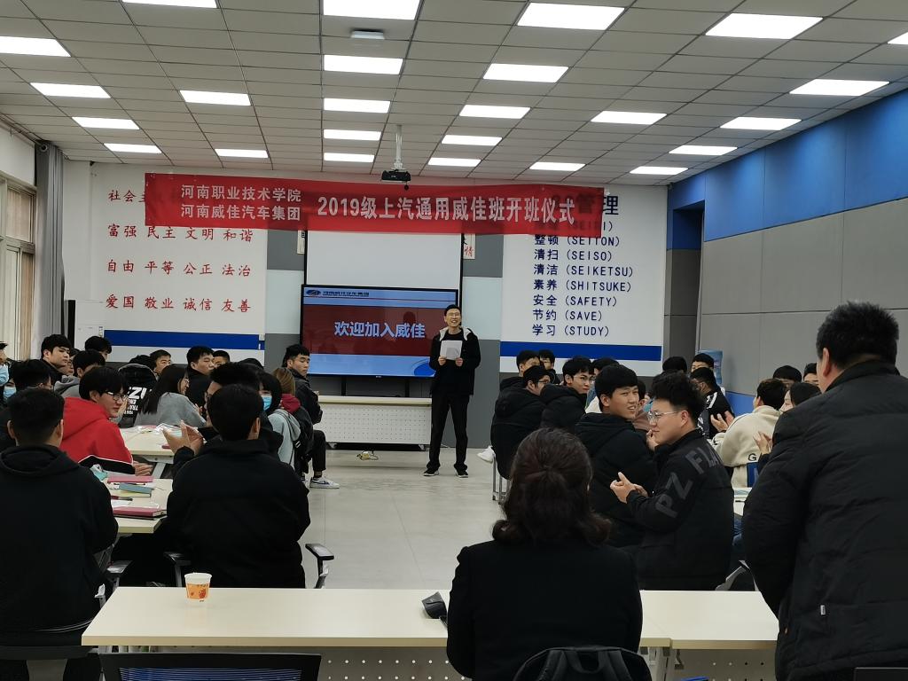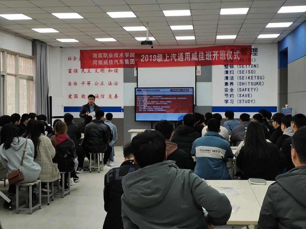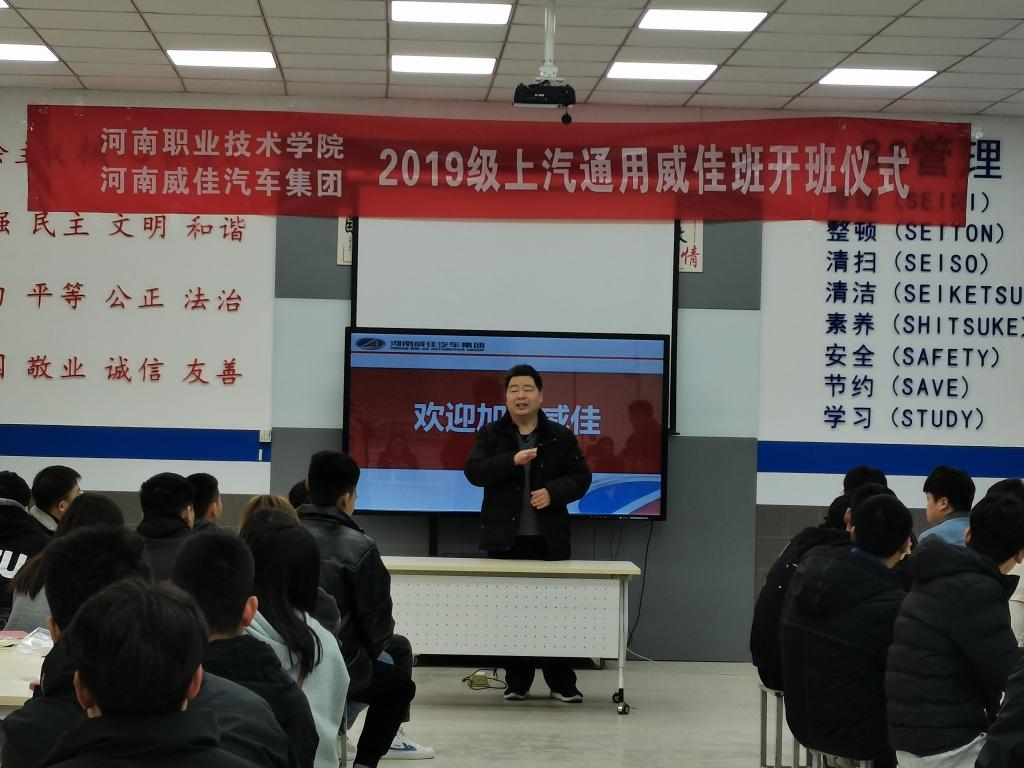 3月11日,我院隆重举办了2019级上汽通用威佳班开班仪式,汽车工程学院院长胡勇、项目负责人张朝杰、河南威佳汽车集团人事行政总监赵敏杰、人事经理王朝军等人出席了此次开班仪式。该项目班基于古天乐代言太阳集团网址与上汽通用汽车、河南威佳汽车集团三方深度合作,共同培养汽车售后服务高技能人才。上汽通用汽车提供整车、发动机等教学用零部件和上汽通用经销商在线学习平台账号,河南威佳汽车集团派出技术总监和管理人员用于教学,学院同步采购270余万元教学设备。在人才培养的方案制定、实习、就业过程中,充分融入三方优势力量,使产教融合政策落实到课堂。
