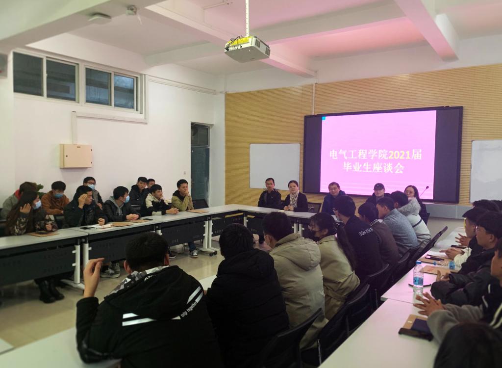 2020年11月23日,电气工程学院2021届毕业生座谈会在机电楼405召开。电气工程学院党总支书记李娟、副书记孙德胜、毕业班辅导员老师以及2021届毕业生代表参加了本次座谈会。