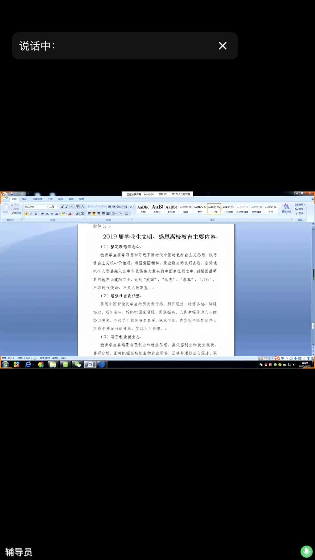 座谈会主要内容为毕业生文明、感恩离校教育。辅导员从坚定理想信念,增强社会责任感,端正就业志向,培养乐观健康习惯,谨记安全法制责任,不忘诚信感恩等六个方面对毕业生进行了教育和引导。