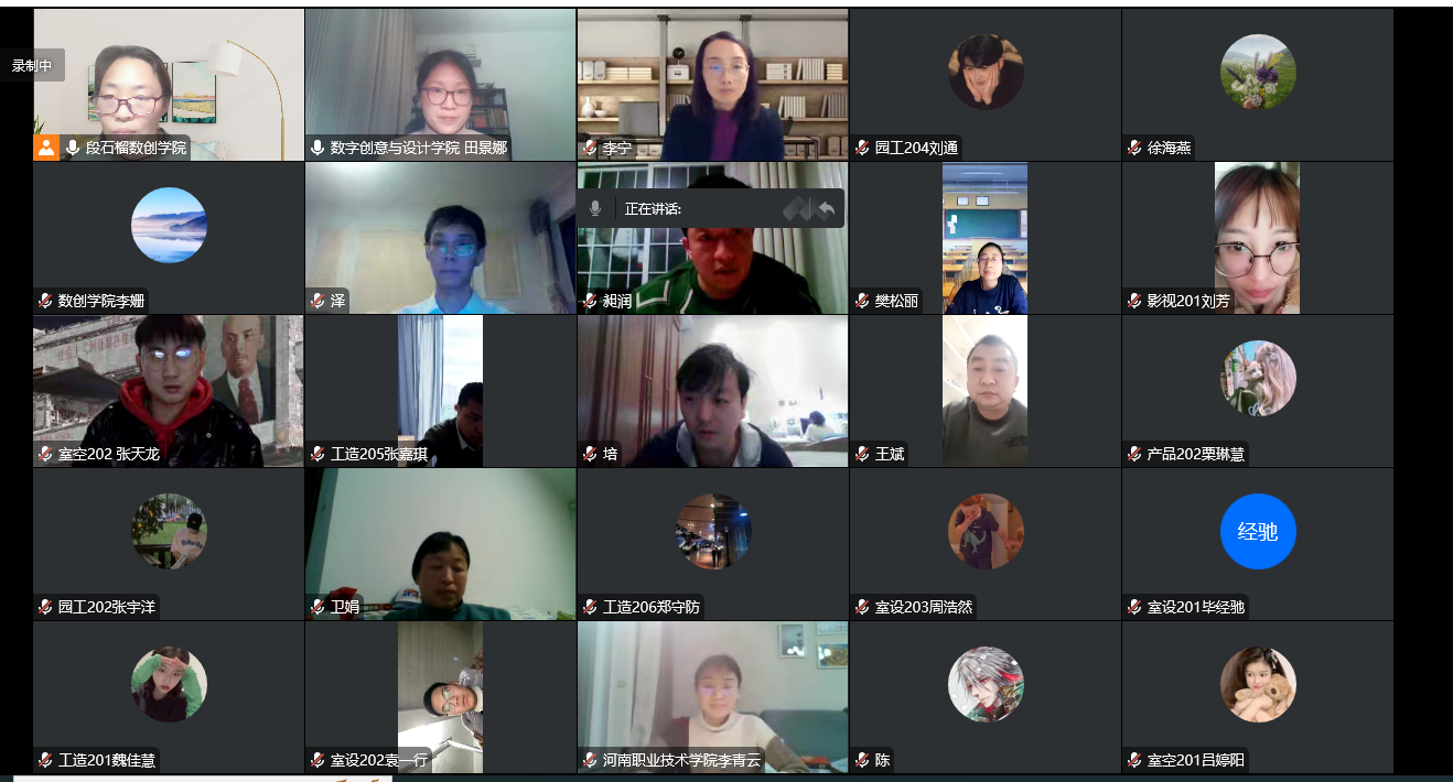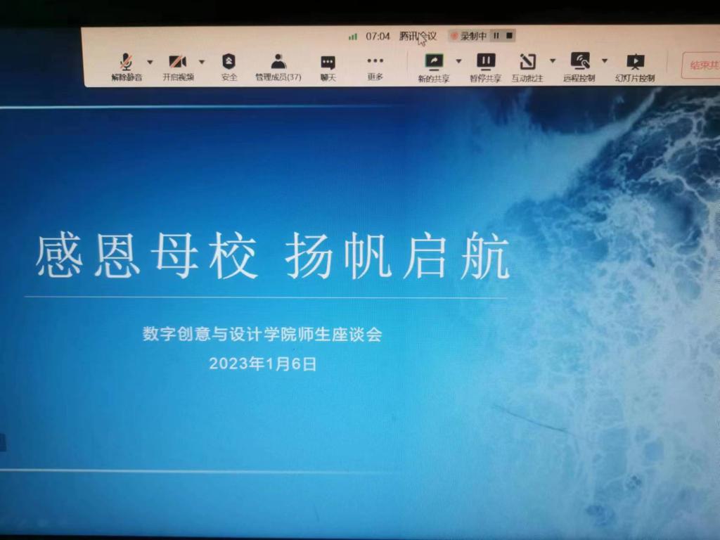 1月6日晚上,数字创意与设计学院2023届师生座谈会在腾讯会议上举行,学院领导班子、30余名各专业毕业生代表、各专业教研室主任、辅导员参加了座谈会,座谈会由数创学院党总支副书记田景娜主持。