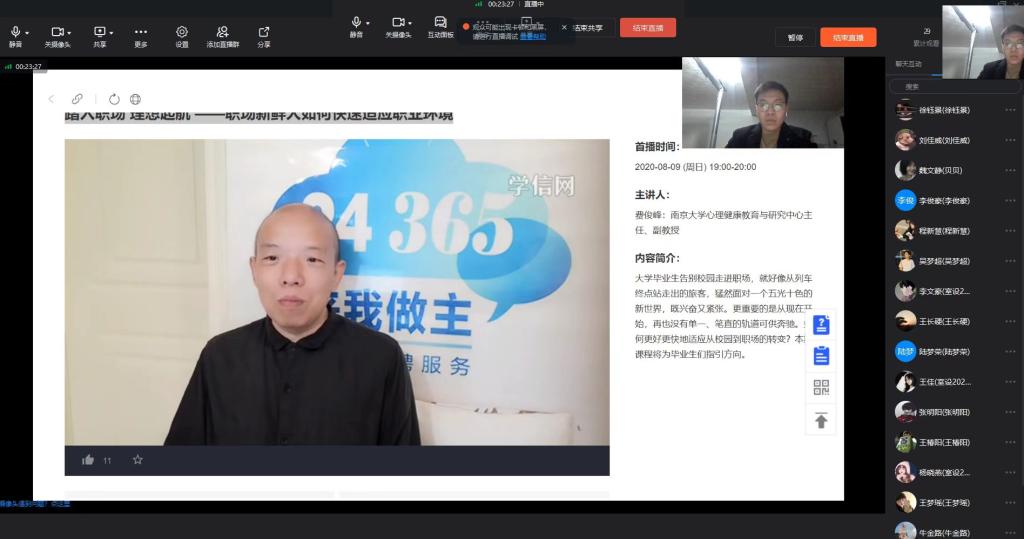 2023年1月9日,数字创意与设计学院2023届毕业生就业思想教育通过钉钉在线上举行。针对座谈会上毕业生反映比较集中的问题,确定了本次学习主题为24365平台上的精品课程《踏入职场 理想起航---职场新鲜人如何快速适应职场环境》、《从校园到职场的华丽转身---新员工社会化过程分析及建议》,课程通过优秀毕业生的案例分享,介绍大学毕业生告别校园走进职场,如何更好更快地适应从校园到职场的转变,为毕业生们指引方向。我院毕业生积极参加钉钉直播会。