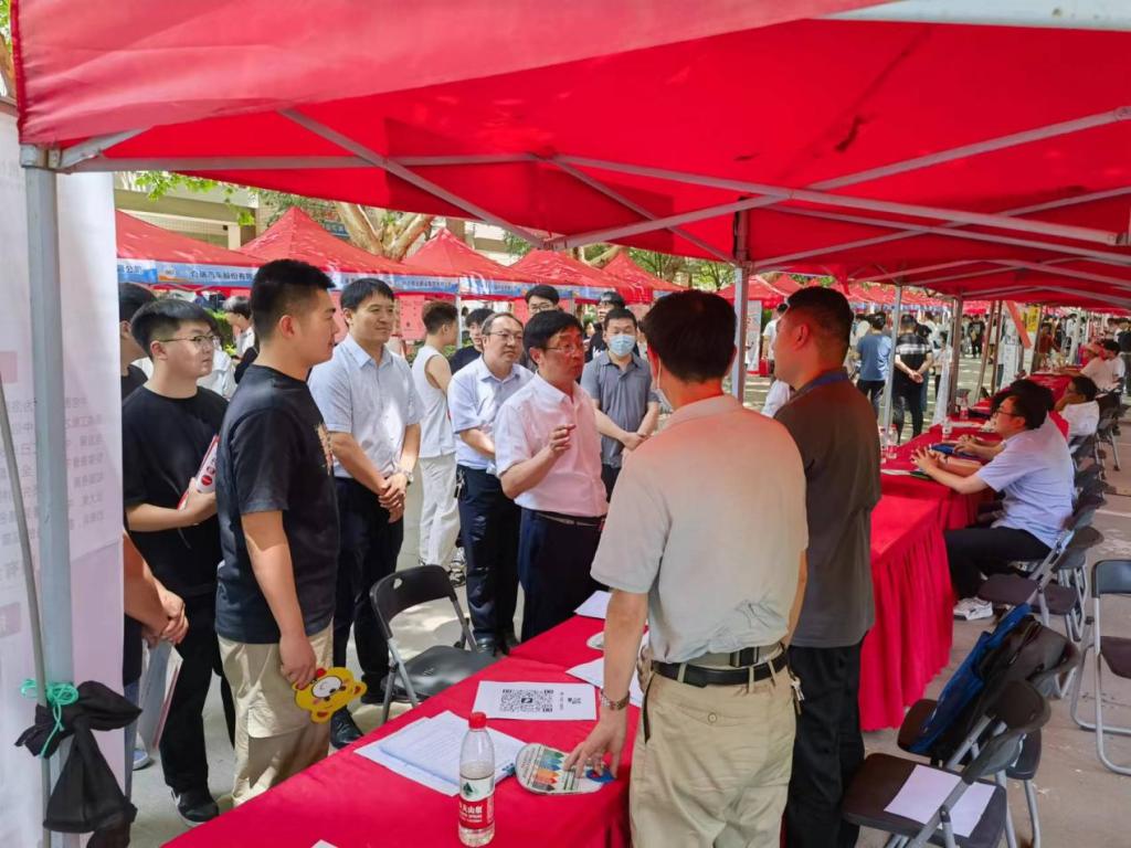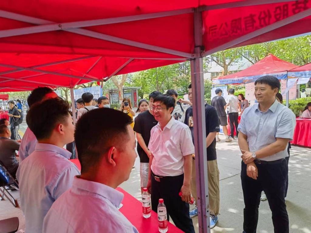 校长梅乐堂、工会主席夏喜利亲临双选会现场与用人单位、参会学生进行亲切交谈,详细了解企业用人需求和毕业生应聘情况。
