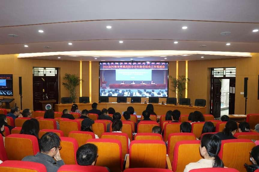 3月16日上午,2024届河南省普通高校毕业生就业创业工作视频会暨春季校园招聘系列专场活动启动仪式在郑州举行,全面贯彻全国两会精神,落实教育部2024届高校毕业生春季促就业攻坚行动决策,部署2024届高校毕业生就业创业工作。省委教育工委副书记,省教育厅党组书记、厅长毛杰,省人社厅副厅长杨昆锋、省工信厅二级巡视员王高潮出席会议并讲话,省委教育工委专职委员吕冰主持会议。校党委书记厉励,古天乐代言太阳集团网址负责人在主会场参会,副校长肖珑、创新创业中心负责人及各二级学院书记、副书记、就业专干及全体毕业班辅导员等80余人参加会议。