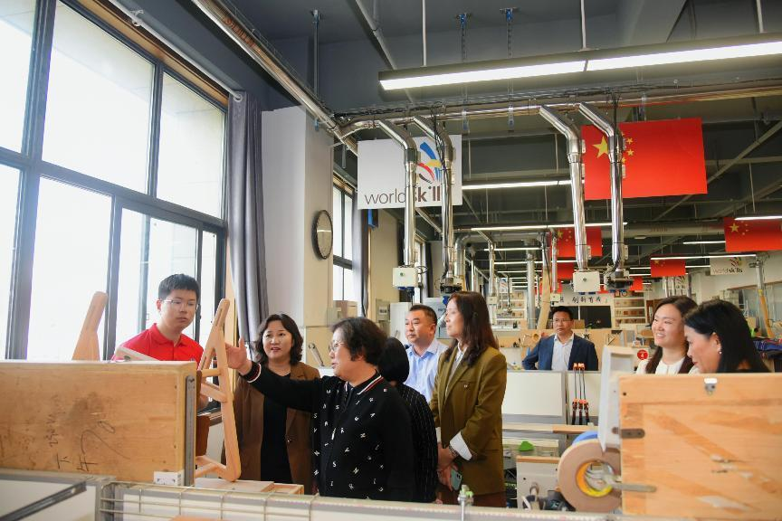 调研组一行还实地调研了学生职业生涯规划与就业指导中心,智能制造学习工厂、数字孪生实训室、激光加工技术技能创新中心,手工木工创意工作室,河职创新港。