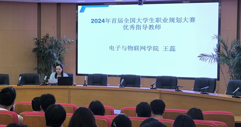 国赛优秀指导教师智慧健康学院乔帆老师和电子与物联网学院王蕊老师在会上进行了经验交流,分享在指导学生参加比赛过程中,如何注重因材施教,结合学生和专业实际,引导学生合理设定职业目标,科学制定规划路径。