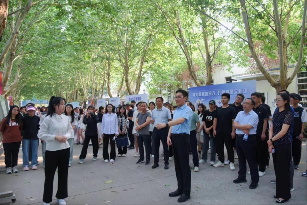 厉励在巡展中,详细了解了各展示项目的参与方式和活动意义,询问了同学们的职业规划,分别与现场师生进行了亲切交谈,鼓励同学们要勇于尝试,做好职业规划,设定短期和长期目标,在仰望星空的时候,更重要的是脚踏实地;在全方位提升自身专业知识、专业技能的同时,还要重视提高情商、职商等综合能力素质。他希望同学们在未来的道路上,保持热情、坚定信念、勇攀高峰,实现人生理想。