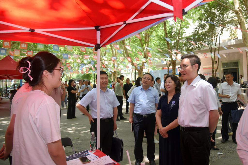 校党委书记厉励、校长夏新颜及其校党委班子成员到现场与企业、学生进行深入交流。厉励到招聘展位详细询问企业对毕业生的具体需求,包括专业技能、工作经验以及个人素质等方面的要求。他强调,学校与企业之间的紧密合作对于企业的发展、学生的成长及发展至关重要,希望通过这次招聘会能够促进双方建立长期稳定的合作关系。厉书记与现场参会的学生交谈,了解了学生们的求职意向和职业规划,鼓励同学们积极就业,先就业,在工作中不断提升能力素养,获得更好的职业发展,同时也表示学校是同学们永远的家,永远祝福毕业生,学校将继续提供就业支持服务,为同学们高质量就业做强有力的支撑。