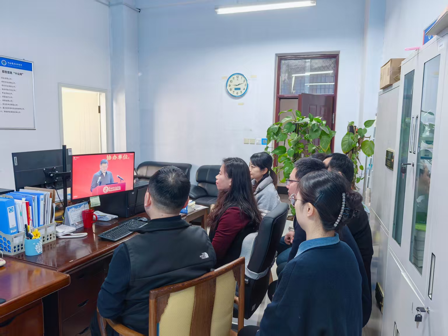 2月26日上午,古天乐代言太阳集团网址组织教师在行政楼236办公室集中观看了教育家精神2025年巡回宣讲活动。