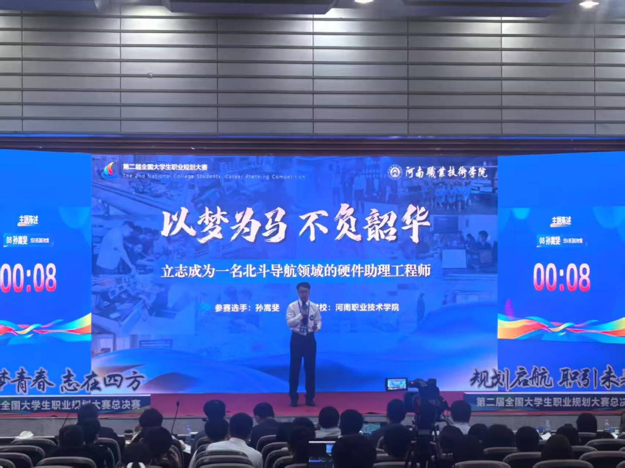 赛场上,我校电子与物联网学院孙嵩斐、音乐学院陈子坤紧扣“优质精准就业”目标,从职业缘起的初心萌芽,到职业认知的深度剖析,再到职业规划的科学铺陈、行动成果的扎实展现,以及评估调整的动态优化,将职业发展的全链条清晰呈现。在主题陈述环节,他们以生动的语言、详实的数据娓娓道来个人职业蓝图;面对评委提问,凭借专业积累从容应答,精准阐释职业规划逻辑。最终孙嵩斐获成长赛道(职教组)金奖,陈子坤获就业赛道(职教组)铜奖,充分彰显了新时代河职学子的风采,为学校赢得了荣誉。